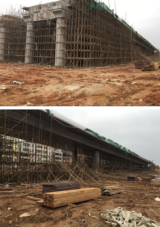 (一)左一聯(lián)模板、滿堂腳手架已拆除約70%;
