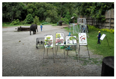 第二天一大早前往大象園,別看大象給人印象笨拙,但卻有著三歲小孩的智商,能踢球、跳舞、玩呼啦圈、假裝睡覺(jué)……最讓人不可思議的是,大象居然會(huì)畫(huà)水彩畫(huà),畫(huà)功一點(diǎn)也不比人類(lèi)差。聽(tīng)導(dǎo)游介紹說(shuō),大象從小就和固定的象夫一起,只相信它的象夫,所以象夫和大象的感情非常深厚。
