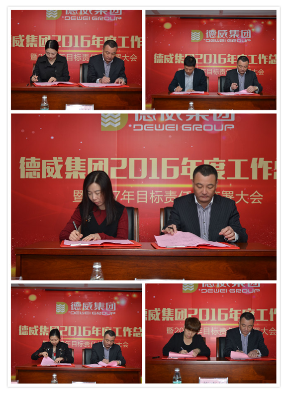 接下來進行的是2017年度目標(biāo)責(zé)任書的簽訂,首先董事長與總裁簽訂2017年度管理目標(biāo)責(zé)任書;其次由董事長分別與董辦張助理、財務(wù)中心邱總、投融資中心葉總、行政中心楊總、飲食公司葉總簽訂責(zé)任書;再由公司總裁袁總分別與開發(fā)中心梁總、營銷中心劉總、計劃運營部郭經(jīng)理、德威花園項目黃總、德豐華建筑公司紀(jì)總、物業(yè)公司陳總簽訂責(zé)任書。